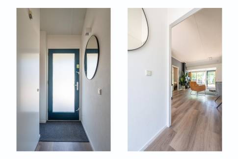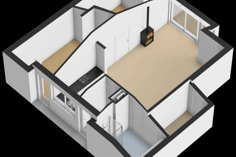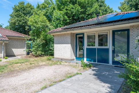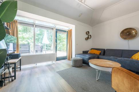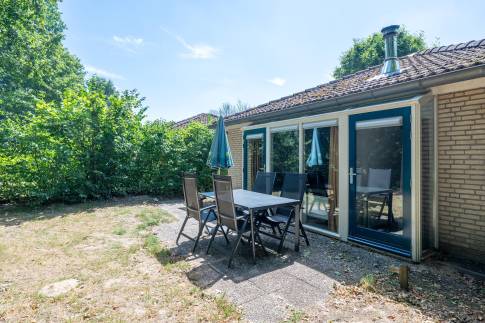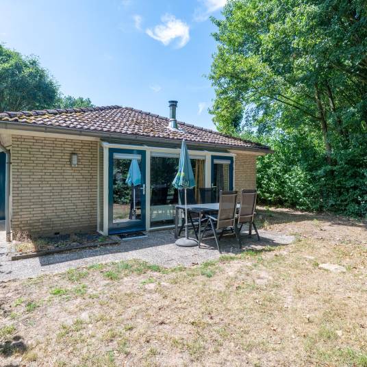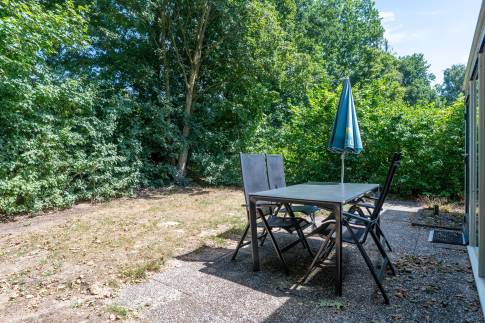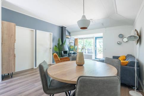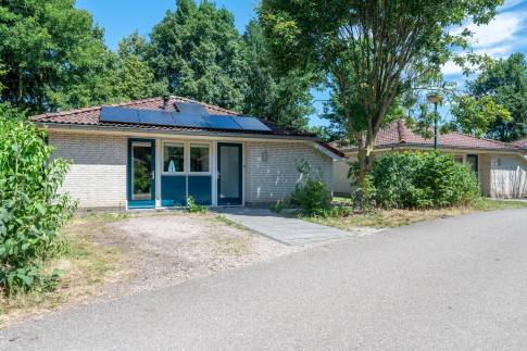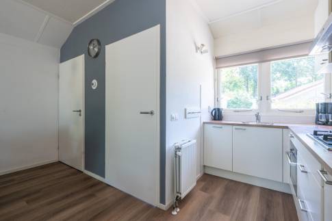Deze vrijstaande, gelijkvloerse recreatiewoning (type 4C5) biedt volop comfort en ligt op een ruim perceel. De lichte woonkamer is ingericht met een gezellige zit- en eethoek en een sfeervolle houtkachel. Vanuit de woonkamer is er toegang tot het terras met terrasmeubilair.