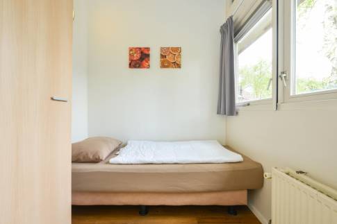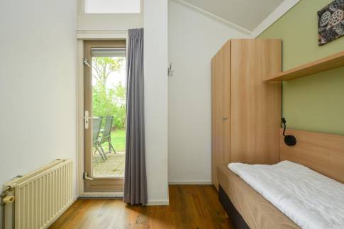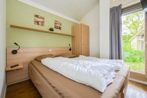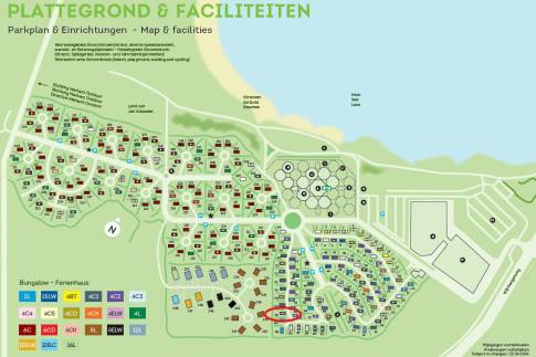 Deze gelijkvloerse recreatiewoning (type 4C2) is gelegen op een perceel eigen grond van maar liefst 375 m2. In de lichte woonkamer tref je een zit- en eethoek met een deur naar het terras met terrasmeubilair. De open keuken is van alle gemakken voorzien zoals o.a. een vaatwasser, combimagnetron en Senseo koffiezetapparaat. De woning telt 3 slaapkamers, waarvan één voorzien is van twee 1-persoons boxsprings, een softtopper en een flatscreen-tv. De andere twee slaapkamers zijn voorzien van een 1-persoons boxspring. De badkamer is voorzien van een douche en wastafel, het toilet is separaat gelegen in de hal. Via de buitenzijde is de bergruimte te bereiken.