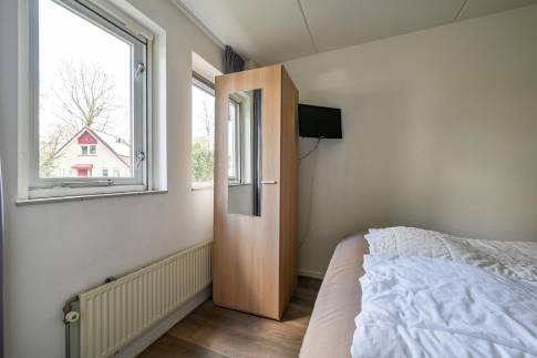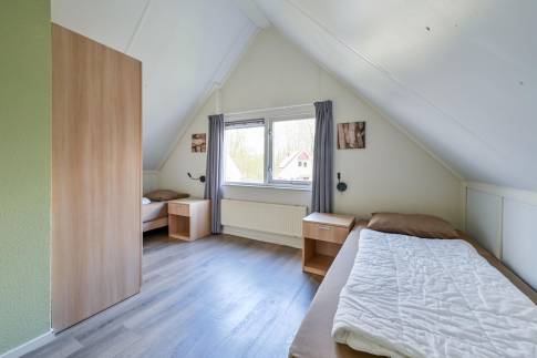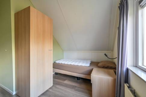 Op de eerste verdieping vind je de overige twee slaapkamers, beide ingericht met twee 1-persoons boxsprings. Hier is ook een tweede toilet aanwezig. De aangebouwde stenen berging is van buitenaf bereikbaar. Deze woning wordt huisdiervrij verhuurd.