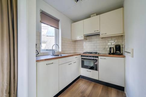 De keuken is compleet uitgerust met diverse (inbouw)apparatuur, waaronder een vaatwasser, combimagnetron, koelkast met vriesvak, waterkoker, 4-pits gaskookplaat en zowel een Senseo- als filterkoffiezetapparaat.