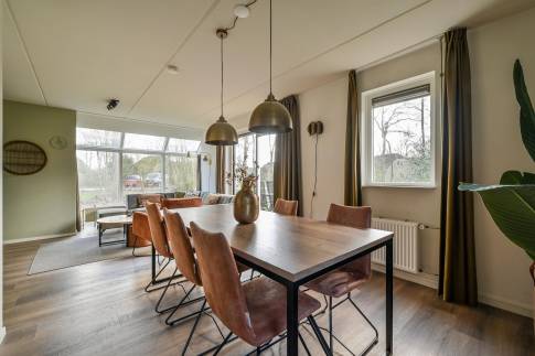 Recreatiewoning 172 (Type 6C) ligt op een ruim perceel eigen grond van 612 m², aan de rand van het park in een gezellig hofje. De woning is recent voorzien van een deels vernieuwde inventaris. De lichte woonkamer met grote ramen en een sfeervolle zithoek biedt een mooi uitzicht over de groene omgeving. Via de schuifpui in de woonkamer bereik je het gemeubileerde terras. Vanuit de ruime eethoek loop je zo de open keuken in.