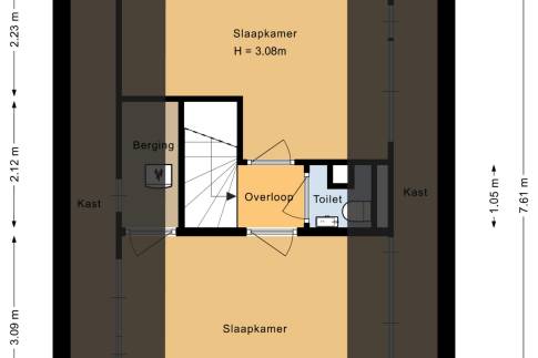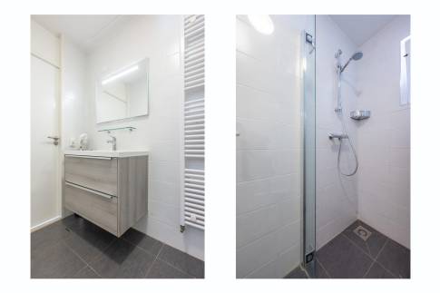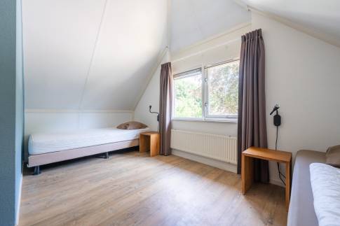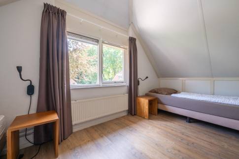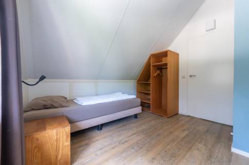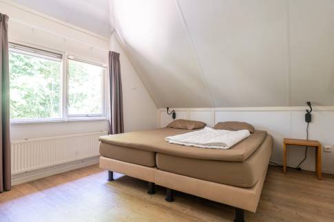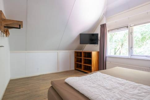 De woning beschikt over twee slaapkamers. Eén slaapkamer is ingericht met twee eenpersoons boxspringbedden en een flatscreen-tv. De andere slaapkamer heeft eveneens twee eenpersoons boxspringbedden. Op deze verdieping is ook een tweede separaat toilet aanwezig.
