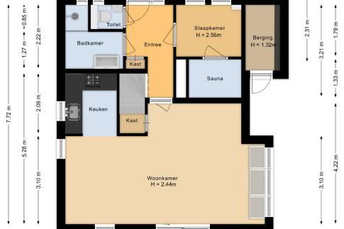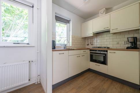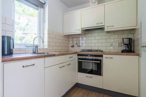 De open keuken is compleet uitgerust met onder andere een vaatwasser, combimagnetron en Senseo-koffiezetapparaat. Op de begane grond bevindt zich een badkamer met douche en wastafel. Daarnaast is er een separaat toilet en een heerlijke sauna.