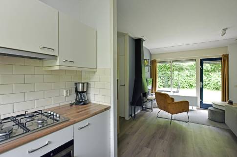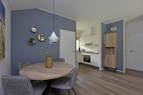 Deze vrijstaande, gelijkvloerse recreatiewoning (type 4C3) biedt u volop comfort en is gelegen op een ruim perceel. De lichte woonkamer is ingericht met een gezellige zit- en eethoek, een sfeervolle houtkachel en biedt via de openslaande deur toegang tot het terras met terrasmeubilair. De open keuken is compleet uitgerust en beschikt onder andere over een vaatwasser, combimagnetron en een Senseo koffiezetapparaat – alles wat u nodig heeft voor een heerlijk verblijf.