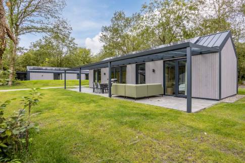 In deze terrasvilla heb je alle ruimte om de stilte op Landgoed Bourtange te ervaren. Dit is pas comfortabele luxe midden in de natuur. De gehele breedte van de woning beschikt over een terrasoverkapping met daaronder een BBQ/sfeerhaard, eet- en loungehoek. Je slaat de slaapkamerdeuren zo open naar het terras. Geniet in alle rust van het heerlijke uitzicht dankzij de glazen pui! Aan duurzaamheid geen gebrek dankzij o.a. zonnepanelen, full electric (gasloos), goede isolatie, kunststof kozijnen met HR +++ glas en een A++++ energielabel.