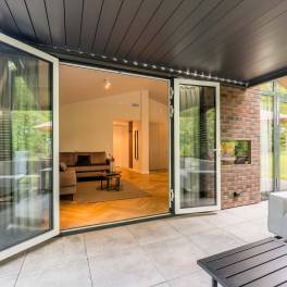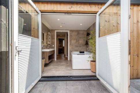 Door een nokhoogte van maar liefst 4,2 meter is de Keizerin een prachtige, lichte woning. Wie zoekt naar een bijzondere uitstraling hoeft dus niet meer verder te zoeken! Zowel voor als (deels) naast de woning vind je een groot terras. De slaapkamer zit aan de terraszijde waar je heerlijk geniet van het uitzicht dankzij een glazen pui. Veel romantischer dan dit wordt het niet. Daarnaast beschikt de villa over eigen royale tuin en wellness faciliteiten zoals een buitensauna en een comfortabele whirlpool. Ga jij ook voor een optionele terrasoverkapping, BBQ of sfeerhaard? Aan duurzaamheid geen gebrek dankzij o.a. zonnepanelen, full electric (gasloos), goede isolatie, kunststof kozijnen met HR +++ glas en een A++++ energielabel.