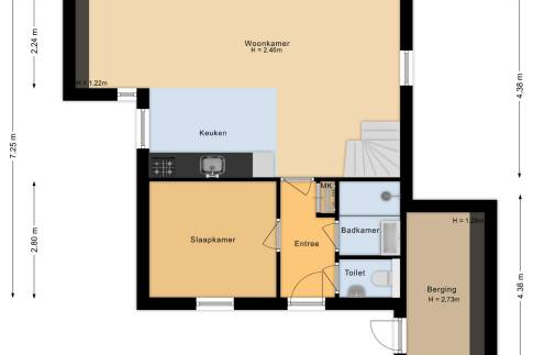 Op de begane grond vindt u een moderne badkamer met inloopdouche en wastafel, een separaat toilet en een slaapkamer met een tweepersoonsbed.