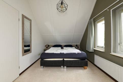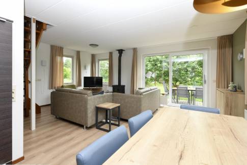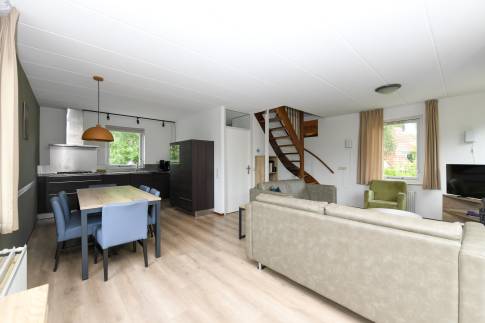 Deze sfeervolle vrijstaande recreatiewoning is geschikt voor 6 personen (type 6C) en ligt prachtig aan het water. De tuingerichte woonkamer is gezellig ingericht met een comfortabele zit- en eethoek en een knusse open haard. Via de schuifpui stapt u zo het terras op, waar u kunt genieten van de buitenlucht en het uitzicht vanaf het terrasmeubilair. De open keuken is compleet uitgerust met diverse inbouwapparatuur, waaronder een combimagnetron, vaatwasser en een Senseo koffiezetapparaat – ideaal voor een ontspannen verblijf. Op de begane grond treft u verder een moderne badkamer met inloopdouche en wastafel, plus een apart toilet. Op de eerste verdieping bevinden zich drie slaapkamers, elk met comfortabele 1-persoons boxspringbedden. Eén van de kamers beschikt bovendien over een tv-aansluiting. Extra praktisch: buiten is er een berging voor fietsen of andere spullen.