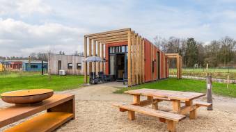 Deze gloednieuwe tiny houses zijn helemaal van deze tijd. De compacte woningen bevatten alles wat je als koppel nodig hebt voor een heerlijk buitenverblijf in Limburg. De 5 woningen staan als een groepje bij elkaar rondom een gezellige barbecueplaats. Door de lamellen van de pergola’s behoudt elke woning zijn privacy. En om helemaal in de vakantiestemming te komen, heeft elke Forest 2 zijn eigen kano.
