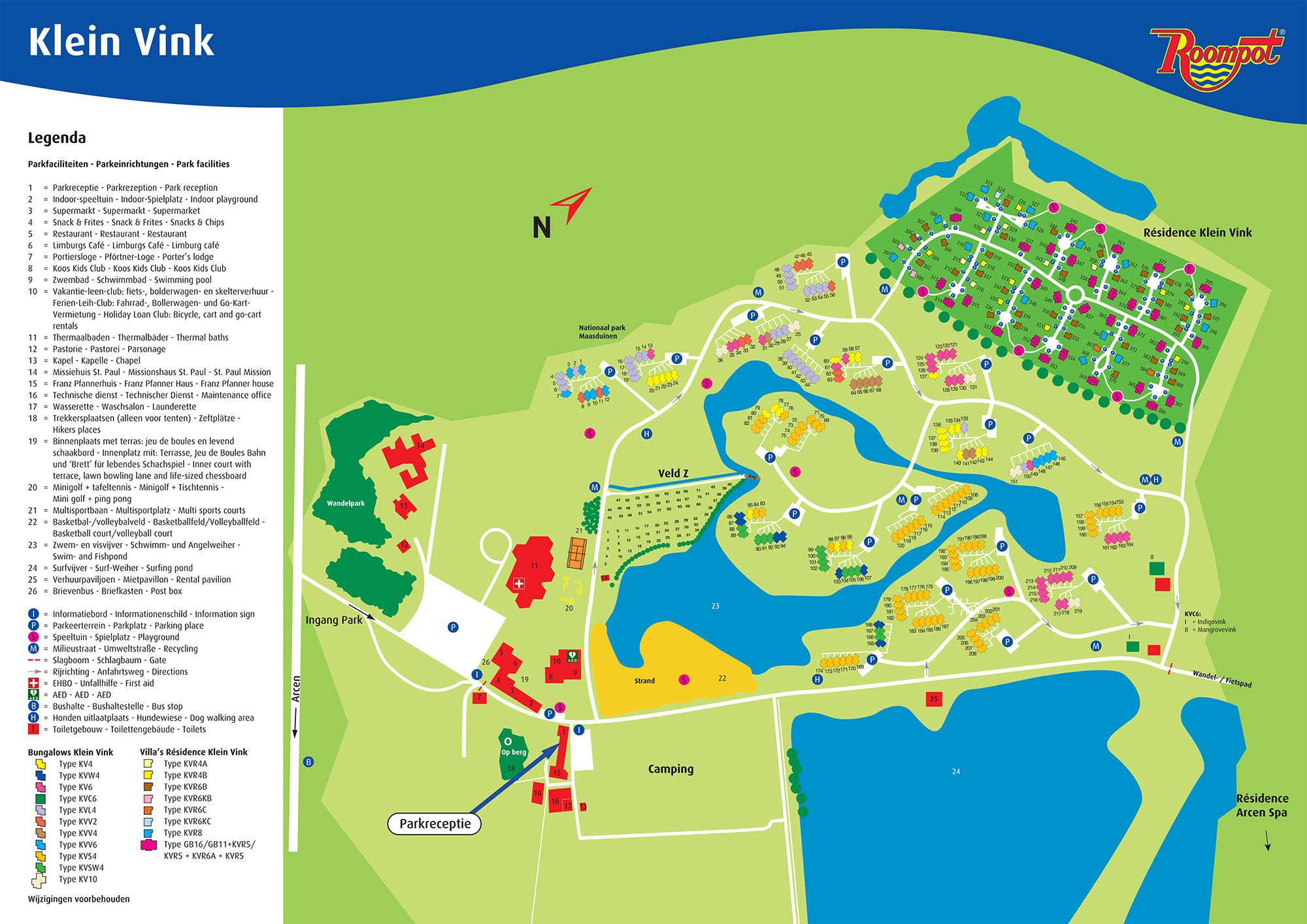 Geïntegreerd in het schitterende Limburgse landschap ligt Klein Vink met 100 luxe recreatiewoningen. De vrijstaande woningen hebben een romantische uitstraling, die geheel aansluit bij de sfeer en beleving van de natuurrijke omgeving, en zijn gelegen op ruime percelen eigen grond. Dit vakantiepark is op korte afstand gelegen van het gezellige dorpscentrum van Arcen, de Hertog Jan bierbrouwerij en de bekende Kasteeltuinen.