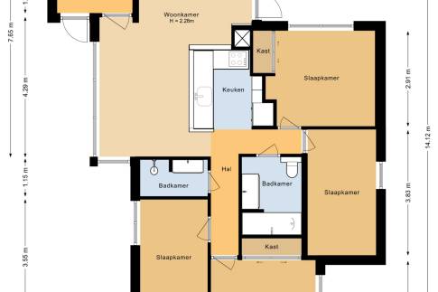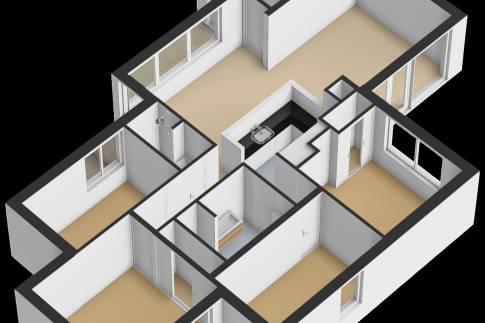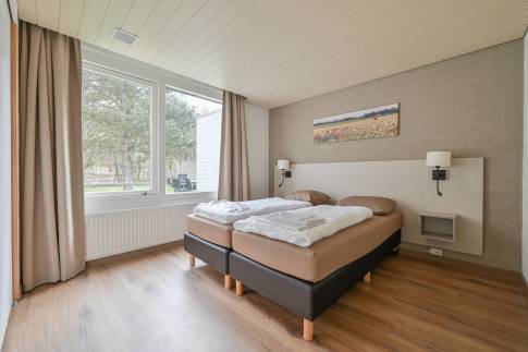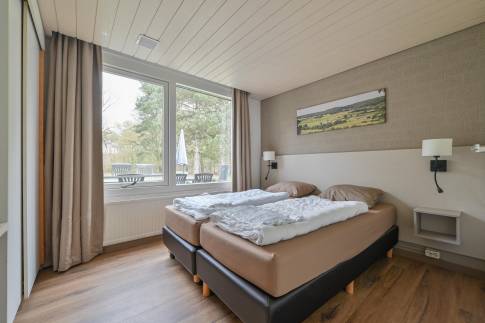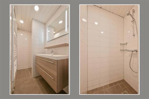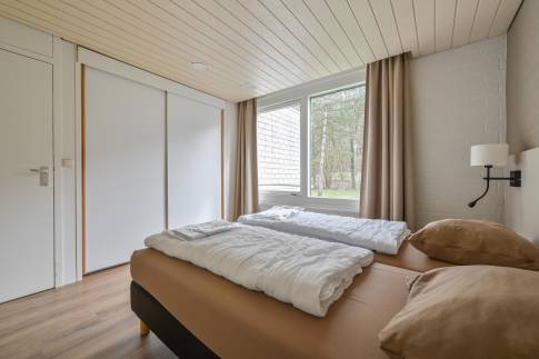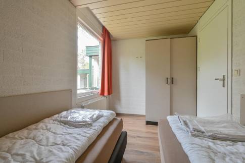 In totaal zijn er vier slaapkamers aanwezig: twee met een tweepersoonsbed en twee met losse bedden. De woning beschikt over twee badkamers. Eén badkamer is compleet uitgevoerd met ligbad, douche, wastafel en toilet. De tweede badkamer heeft een douche en wastafel. Daarnaast is er een inpandige berging aanwezig voor extra opslagruimte.