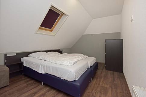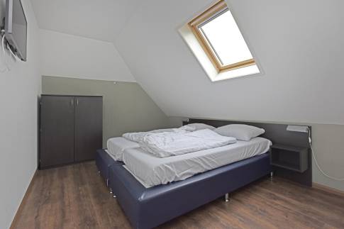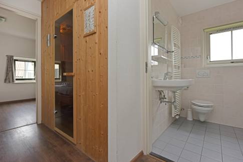 Op de verdieping vind je nog drie slaapkamers, eveneens ingericht met twee 1-persoons boxspringbedden. Eén van deze kamers is extra uitgerust met een flatscreen-tv. Er zijn op de verdieping twee badkamers gelegen, één is voorzien van een douche en wastafel. De tweede badkamer is voorzien van een bubbelbad, wastafel en een toilet. Voor extra ontspanning is er bovendien een 6-persoons infraroodsauna aanwezig.