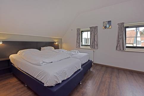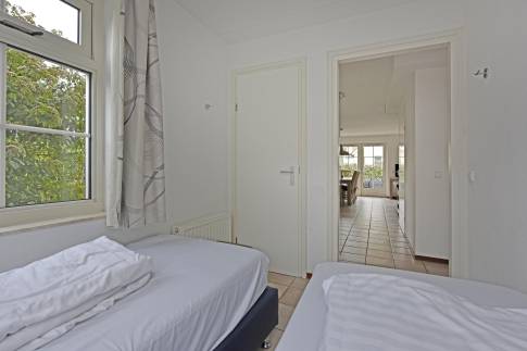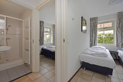 Op de begane grond bevinden zich twee comfortabele slaapkamers, beide voorzien van twee 1-persoons boxspringbedden. De badkamer beschikt over een wastafel en een douche en daarnaast is er in de hal een separaat toilet aanwezig.