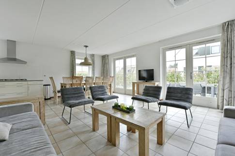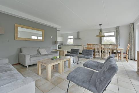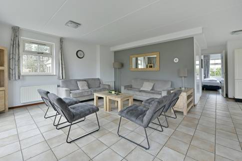 Deze luxe 10-persoons woning van het type 10L is gelegen aan de rand van het park en bevindt zich op een ruim perceel van maar liefst 636 m². Dankzij de grote raampartijen voelt de royale woonkamer licht en ruim aan en is dit dé plek om samen te ontspannen. De keuken is uitgerust met diverse inbouwapparatuur, waaronder een vaatwasser, combimagnetron en Nespresso koffiemachine. Via de schuifpui stap je zo het zonnige terras op, waar je in alle rust kunt genieten van de buitenruimte.