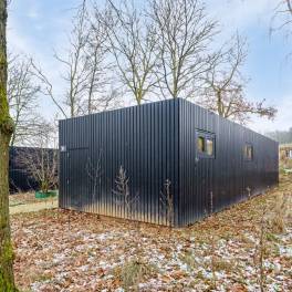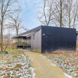 De lodge heeft een tuin met een deels overdekt terras met tuinmeubilair. Er kan worden geparkeerd op de centrale parkeerplaats.
