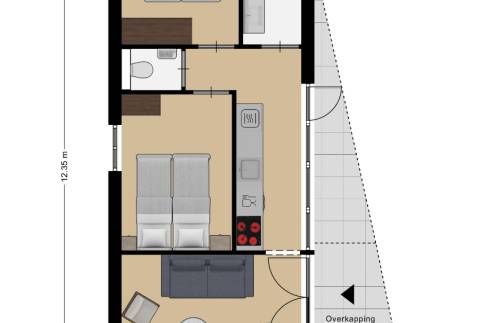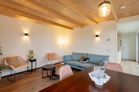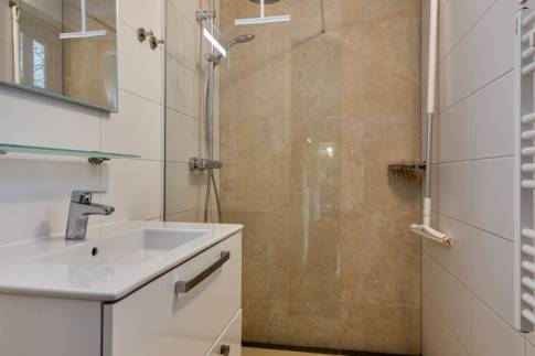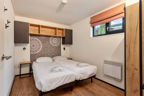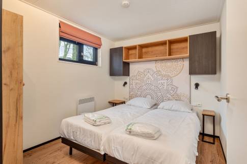 Er zijn 2 slaapkamers met elk 2 eenpersoonsbedden. De bedden zijn extra lang, namelijk 210 cm. De badkamer heeft een inloopregendouche en vloerverwarming. Er is een apart toilet.