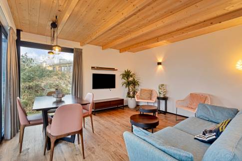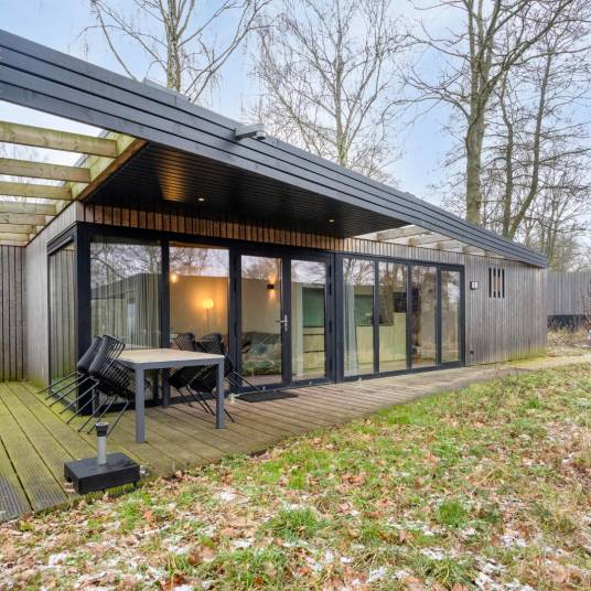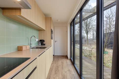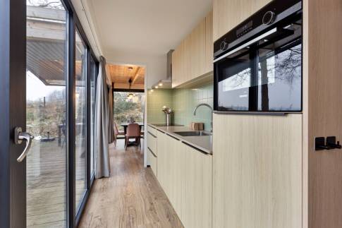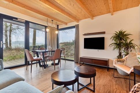Deze vrijstaande, gelijkvloerse lodge is geschikt voor 4 volwassenen en 1 baby. De woonkamer heeft een zithoek, eethoek, televisie en vloerverwarming. De open keuken heeft een vaatwasser, koffiecupapparaat, kokendwaterkraan, combimagnetron, en koelvriescombinatie. Er is gratis wifi.