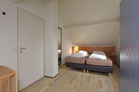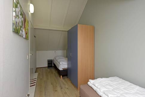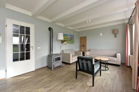 Deze hoekwoning (type 6C1) vindt u op een rustige plek aan de rand van het park. Bij binnenkomst komt u via de hal uit in de knusse woonkamer met sfeervolle houtkachel. In de woonkamer is ook een eethoek te vinden en via de deur naar buiten is het gemeubileerde terras te bereiken. De open keuken beschikt over verschillende (inbouw)apparatuur zoals een vaatwasser, magnetron, koelkast met vriesvak, 4-pits gaskookplaat en een Senseo- en filterkoffiezetapparaat. Eén van de drie slaapkamers is gelegen op de begane grond en is ingericht met twee 1-persoons boxsprings met softtopper. Ook de badkamer is gelegen op de begane grond en beschikt over een ligbad en wastafel. In de hal is een separaat toilet aanwezig. De andere twee slaapkamers vindt u op de verdieping. Er is boven ook een handige extra ruimte met wastafel. De aangebouwde bergruimte is via de buitenzijde van de woning te bereiken.