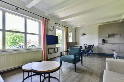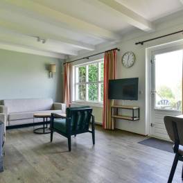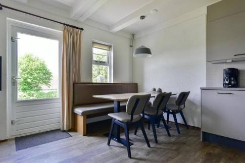 Dicht bij de voorzieningen en centrale parkeerplaats, ligt deze 6-persoons hoekwoning op een rustige, zonnige plek. De woonkamer beschikt over een gezellige zithoek met flatscreentelevisie en een houtkachel. Vanuit de lichte woonkamer bereik je het gemeubileerde terras. De open keuken heeft een vaatwasser, magnetron, koelkast met vriesvak, Senseo- en filterkoffiezetapparaat. De badkamer op de begane grond heeft een ligbad en wastafel. Er is beneden ook een apart toilet. Er zijn drie slaapkamers in deze woning, allen voorzien van twee 1-persoons boxspringbedden. Eén van de slaapkamers is op de begane grond gelegen. De andere twee slaapkamers liggen op de verdieping. Er is boven ook een handige extra ruimte met wastafel. De woning beschikt daarnaast over een berging.