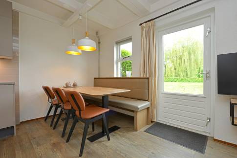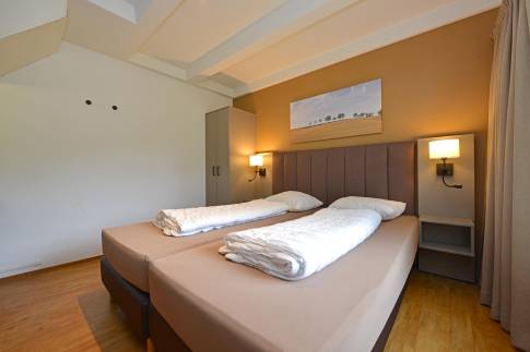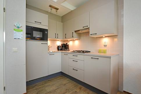 Aan de rand van het park vindt u deze 6-persoons 2-onder-1-kap woning van het type 6C1. De knusse woonkamer heeft naast een flatscreentelevisie een gezellige houtkachel. Vanuit de woonkamer loopt u zo het gemeubileerde terras op. De open keuken is voorzien van moderne gemakken. U treft hier onder andere een vaatwasser, magnetron, koelkast met vriesvak, Senseo- en filterkoffiezetapparaat. Er zijn drie slaapkamers in deze woning aanwezig. De slaapkamers boven zijn voorzien van twee eenpersoons boxspringbedden. Eén van de slaapkamers is op de begane grond gelegen en voorzien van een tweepersoons boxspringbed met softtopper. De badkamer is gelegen op de begane grond. Deze is voorzien een ligbad met een douchekop en wastafel. Het toilet is separaat. Op de verdieping is nog een handige wasruimte aanwezig.