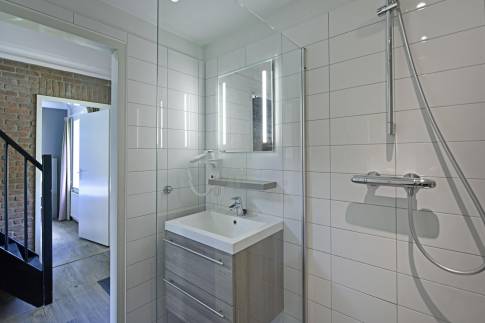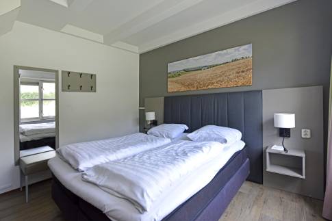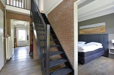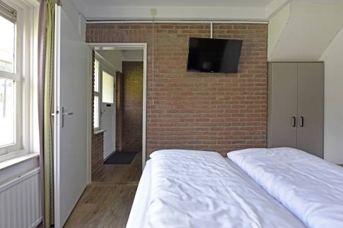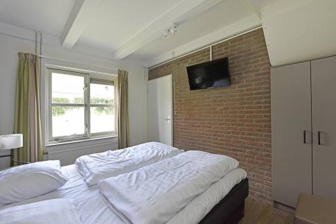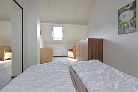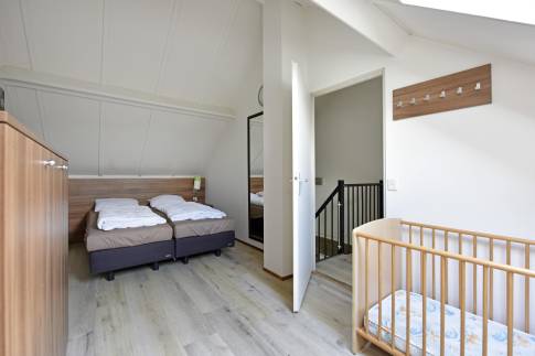 Er zijn drie slaapkamers, waarvan één op de begane grond met een tweepersoons Auping boxspringbed en tv. De badkamer met inloopdouche en wastafel bevindt zich ook op de begane grond. Het toilet is apart. Op de bovenverdieping zijn twee kamers, waarvan één met twee 1-persoons boxspringbedden. Daarnaast is er een kamer met een sauna om heerlijk te ontspannen. Op de overloop bevindt zich een extra ruimte met wastafel.