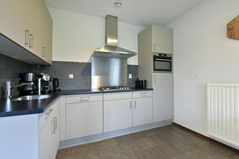 De open keuken is uitgerust met moderne apparatuur, waaronder een vaatwasser, combimagnetron, filterkoffiezetapparaat en een Nespresso Zenius koffiemachine, zodat u van alle gemakken bent voorzien.