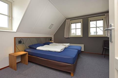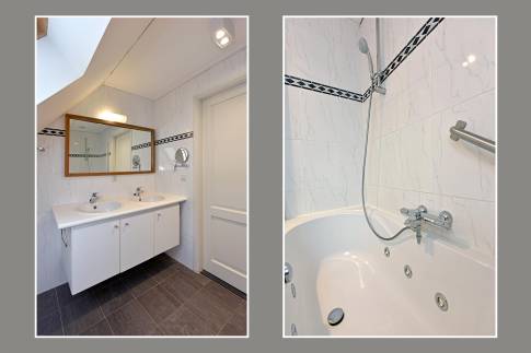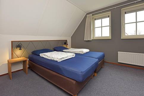 Op de eerste verdieping zijn twee comfortabele slaapkamers, elk met twee 1-persoons boxspringbedden. De luxe badkamer op deze verdieping beschikt over een bubbelbad, wastafel en een tweede toilet.