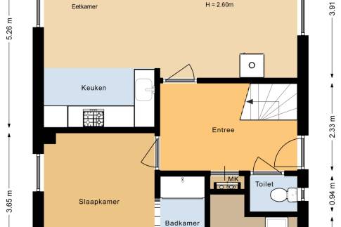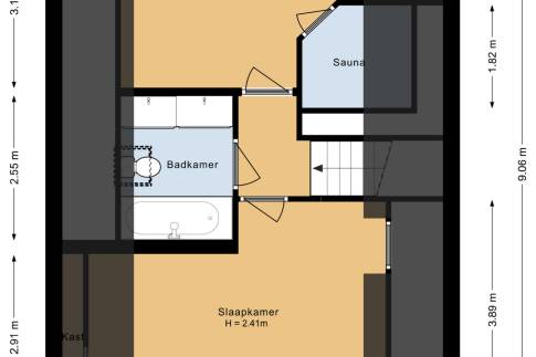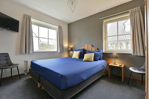 Op de begane grond bevindt zich een ruime slaapkamer met een 2-persoons boxspringbed met softtopper en een televisie. Aangrenzend vindt u de en-suite badkamer, compleet met douchecabine en wastafel. Het toilet is apart gelegen voor extra gemak.