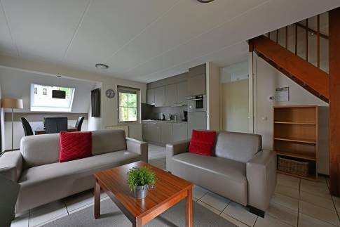 Deze vrijstaande 6-persoons recreatiewoning (type 6C2) heeft een vrije ligging met een grote tuin. De woning beschikt over een gezellige zit- en eethoek met sfeervolle houtkachel. Via de woonkamer bereik je het terras waar je samen met de hele familie heerlijk kunt zitten. De open keuken is voorzien van diverse inbouwapparatuur, zoals een vaatwasser, combimagnetron en Senseo-koffiezetapparaat. De woning telt drie slaapkamers, waarvan één op de begane grond. Ook bevindt zich op de begane grond de eerste badkamer, voorzien van ligbad, douche en wastafel. Daarnaast is er een separaat toilet. Op de eerste verdieping vind je de overige twee slaapkamers en een badkamer met douche, toilet en wastafel. De woning beschikt verder over een inpandige berging.
