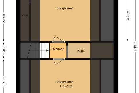 – Op de overloop bevindt zich een eigenarenkast.