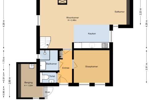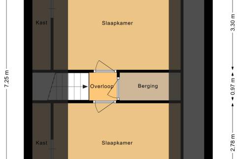 De woning beschikt over drie slaapkamers, waarvan één op de begane grond. Hier vind je ook een badkamer met douche en wastafel, en een apart toilet. Op de eerste verdieping liggen nog twee slaapkamers. Verder is er een aangebouwde berging die je van buitenaf kunt bereiken.