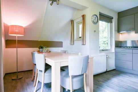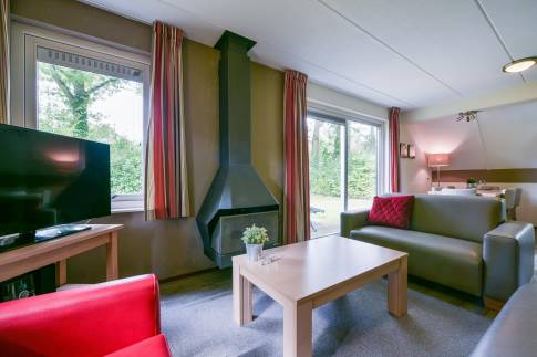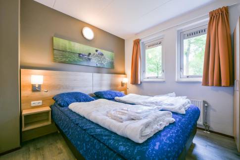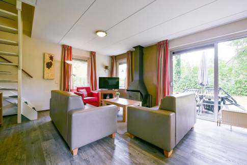 Deze vrijstaande 6-persoonsrecreatiewoning (type 6C4) heeft een vrije ligging met een grote tuin. Het perceel eigen grond bedraagt maar liefst 671 m2. De woning beschikt over een gezellige zit- en eethoek met sfeervolle houtkachel en schuifpui naar het terras met verstelbaar terrasmeubilair. De open keuken is voorzien van diverse inbouwapparatuur, zoals o.a. een vaatwasser, combimagnetron en Senseo koffiezetapparaat. De woning telt drie slaapkamers, waarvan één op de begane grond. De slaapkamers zijn allen voorzien van twee 1-persoons boxsprings. Er is één badkamer is op de begane grond gesitueerd en is voorzien van een douche en wastafelmeubel. Het toilet is separaat. Op de eerste verdieping zijn de overige twee slaapkamers en een badkamer te vinden. Deze is voorzien van een douche, toilet en wastafel. De woning beschikt daarnaast over een inpandige berging.