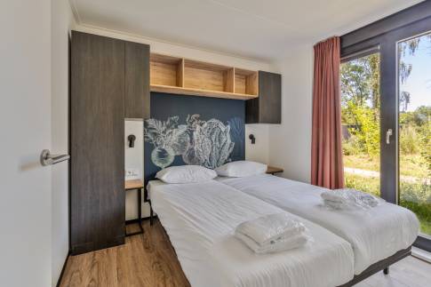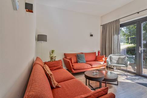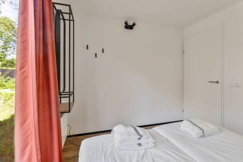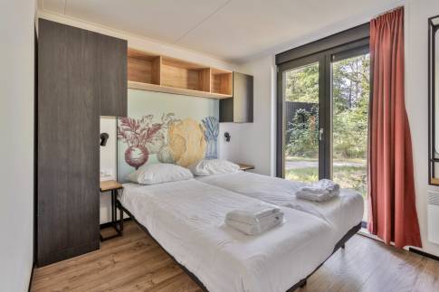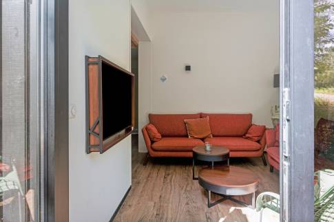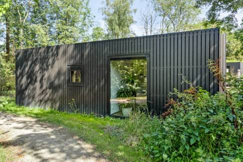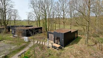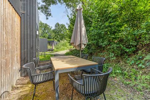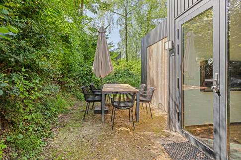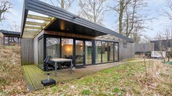 Dankzij het sfeervolle donkere hout gaat het exterieur van dit gelijkvloerse vakantieverblijf voor 6-personen helemaal op in de bosrijke omgeving. Vanbinnen word je omringd door comfort en luxe. Er is een luxe open keuken met een gezellige eethoek. De comfortabele zithoek geeft toegang tot een fijn terras. Deze woning heeft vloerverwarming.