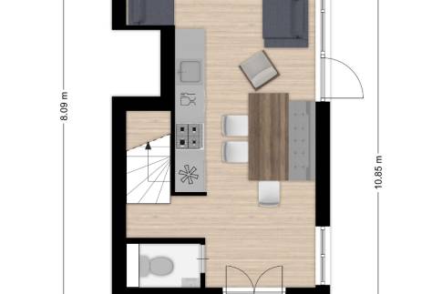 Dit verblijf telt twee verdiepingen. De luxe keuken, gezellige eethoek en comfortabele zithoek bevinden zich op de begane grond. Ook vindt u hier een apart toilet en een heerlijk terras.