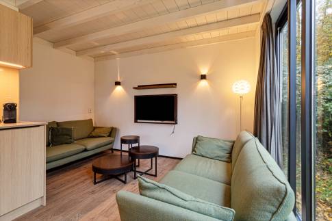De woonkamer en beide badkamers beschikken over vloerverwarming. De Woodland Lodge 6 is een heerlijke plek om comfortabel samen te komen met familie of vrienden. De volledige inventaris is in de prijs inbegrepen.