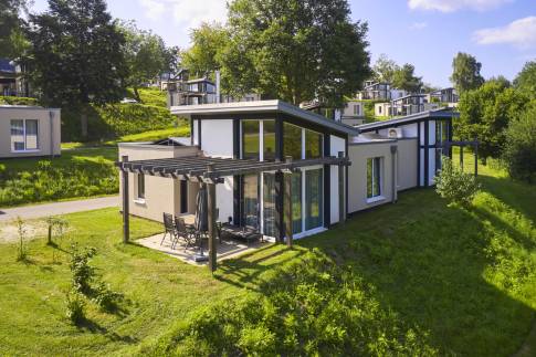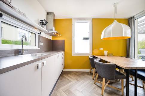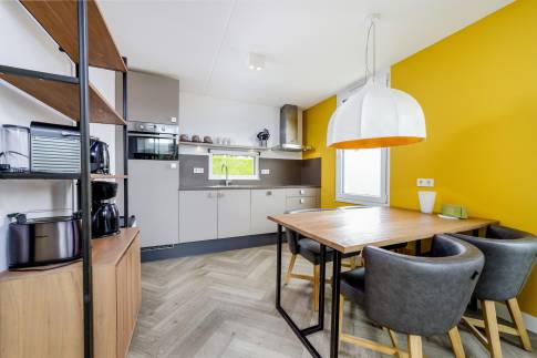 Woning 10 ligt aan de rand van het park dat tegen een helling is gebouwd. Deze recreatiewoning is gebouwd in 2018 en van alle gemakken voorzien. De modern ingerichte woonkamer heeft een gezellige houtkachel. Naast de knusse zithoek en de eethoek is er een open keuken met diverse inbouwapperatuur. Denkt u hierbij bijvoorbeeld aan een combi-magnetron, keramische kookplaat, vaatwasser en een koelkast met vriesvak. In de twee slaapkamers ligt u comfortabel op Auping boxspringbedden. In de ouderslaapkamer ligt hierop een 2-persoons softtopper en er is een extra flatscreen televisie. Voor elke aankomst worden de bedden opgemaakt. De badkamer heeft een douche en een wastafel en bovendien een fijne sauna-/zonnehemelcombinatie. Er is een separaat toilet. Op het terras bij uw woning kunt u heerlijk van een moezelwijntje genieten.