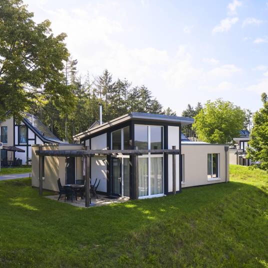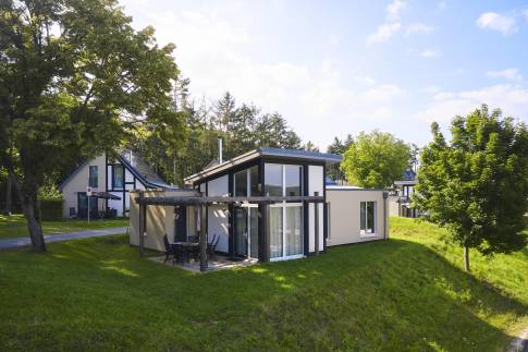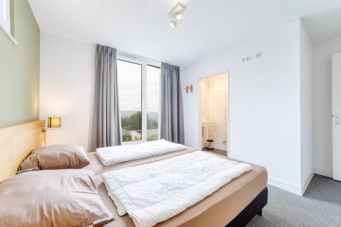 Deze vrijstaande recreatiewoning heeft een prachtig uitzicht over een glooiend landschap. In de modern ingerichte woonkamer vindt u een gezellig eethoek en houtkachel. Naast zithoek en eethoek is er een open keuken met diverse inbouwapperatuur. Denkt u hierbij bijvoorbeeld aan een combi-magnetron, keramische kookplaat, vaatwasser en een koelkast met vriesvak. Op het terras bij de woning is genieten van het uitzicht met een moezelwijntje. Er zijn in de woning drie slaapkamers met comfortabele boxspringbedden. De ensuite badkamer heeft een douche en een wastafel. Daarnaast is er een badkamer met bad, toilet en wastafel. Tevens is er een separaat toilet.