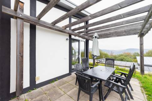 – Achter het terras bij deze woning loopt de helling relatief steil af.