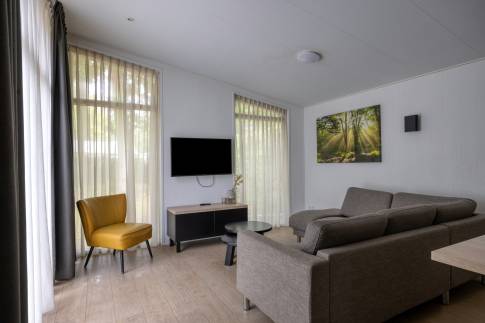 Deze gelijkvloerse, vrijstaande lodge biedt ruimte aan maximaal 4 personen en is de ideale plek voor een comfortabel en ontspannen verblijf. De sfeervolle woonkamer is voorzien van een moderne televisie met streamfuncties, zodat je eenvoudig je favoriete series of films kunt bekijken. In de hele accommodatie is gratis wifi beschikbaar.