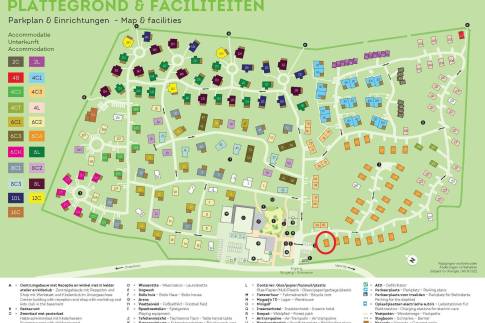 Deze vrijstaande 6-persoonswoning (type 6C4) is gelegen op een perceel eigen grond van 597 m2. De woning beschikt over een moderne zit- en eethoek met open haard. De woonkamer is groot en biedt veel comfort. Door de schuifpui komt u op het terras met terrasmeubilair. De open keuken is voorzien van diverse inbouwapparatuur, waaronder een vaatwasser, combimagnetron, koelkast met vriesvak en Senseo koffiezetapparaat. De woning telt drie slaapkamers, elk voorzien van twee 1-persoons boxsprings. Eén slaapkamer is op de begane grond gelegen, de overige twee slaapkamers zijn gelegen op de 1e verdieping. De badkamer op de begane grond is voorzien een douche, wastafel en toilet. Daarnaast is er nog een tweede separate toilet te vinden op de 1e verdieping. De woning beschikt tevens over een berging.