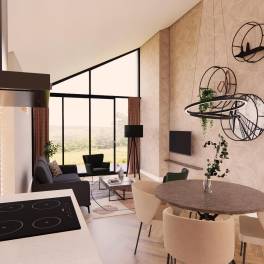 De ruime open keuken en woonkamer met schuifpui naar buiten, bieden naast comfort ook een mooi uitzicht op de natuur.