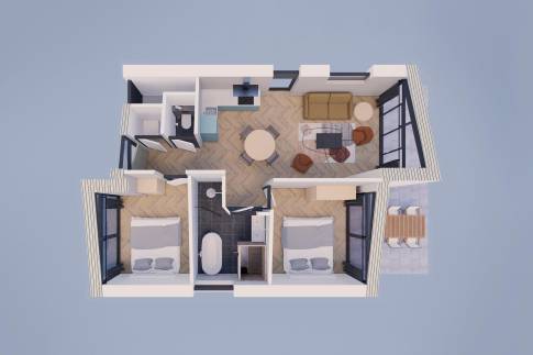 De 4-persoons recreatiewoning is ontworpen als een ideale en duurzame recreatiewoning voor een gemiddeld gezin, kleine vriendengroep of bijvoorbeeld twee stellen die er even tussenuit willen. De ruime open keuken en woonkamer met schuifpui naar buiten, bieden naast comfort ook een mooi uitzicht op de natuur. De badkamer is voorzien van een douche, ligbad en een inpandige sauna en elke woning is voorzien een eigen laadpaal voor elektrische auto’s..