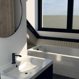 De royale badkamer boven is in de Luxe versie uitgevoerd met een douche, een ligbad en een inpandige sauna. De Luxe woning heeft een afsluitbare houten berging, waar elektrische fietsen veilig gestald kunnen worden en elke woning is voorzien een eigen laadpaal voor elektrische auto’s.