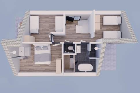 De royale badkamer boven is in de Luxe versie uitgevoerd met een douche, een ligbad en een inpandige sauna. De slaapkamers op de verdieping zijn ruim en comfortabel. Ze baden overdag in het licht vanwege de grote dakkapellen