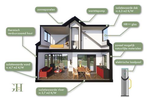- 8-persoons luxe recreatiewoningen van hoge kwaliteit, die voldoen aan de BENG eisen