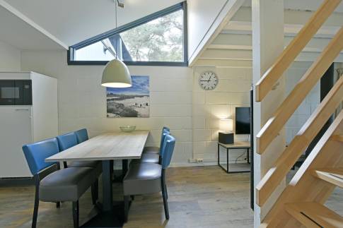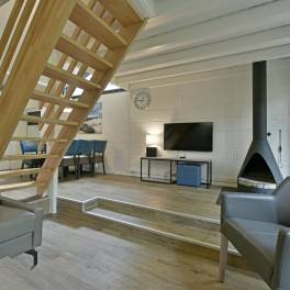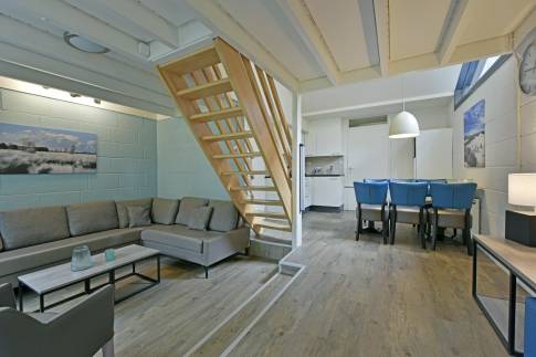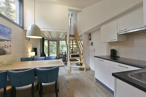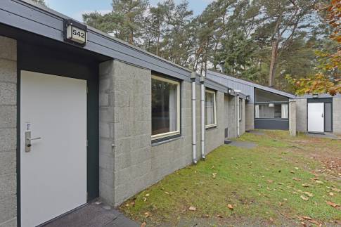 Recreatiewoning 542 (type 6B1) is een geschakelde woning nabij het water. Deze ligt op een eigen perceel grond van 207 m2. De knusse woonkamer met zitkuil en open haard kijkt uit over de groene omgeving. De deur naar buiten geeft toegang tot het gemeubileerde terras met terrasmeubilair. De open keuken met eethoek is van alle gemakken voorzien en beschikt over verschillende (inbouw)apparatuur zoals o.a. een vaatwasser, magnetron, koelkast met vriesvak en filterkoffiezetapparaat.