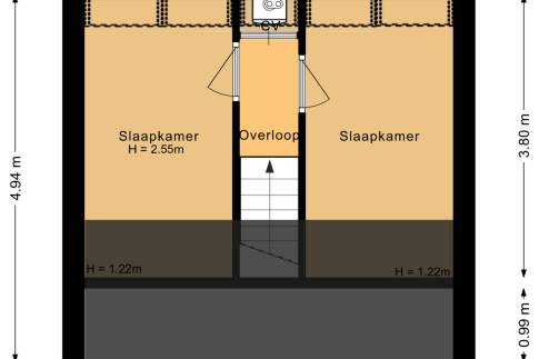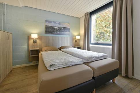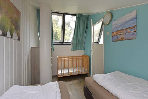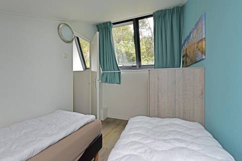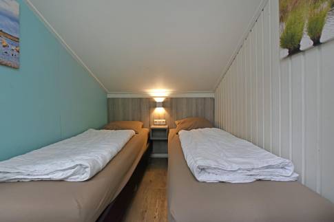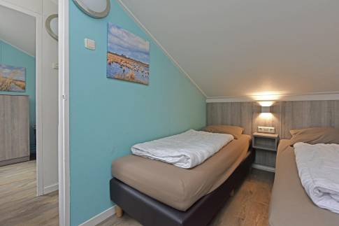 Via de trap in de woonkamer is de eerste verdieping bereikbaar. Hier vindt u de overige 2 slaapkamers, deze zijn ingericht met twee 1-persoonsboxsprings.