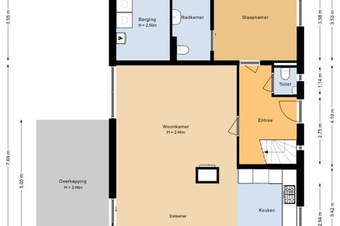 Via de buitenzijde van de woning is de ruime inpandige berging te bereiken met een wasmachine en wasdroger.