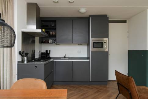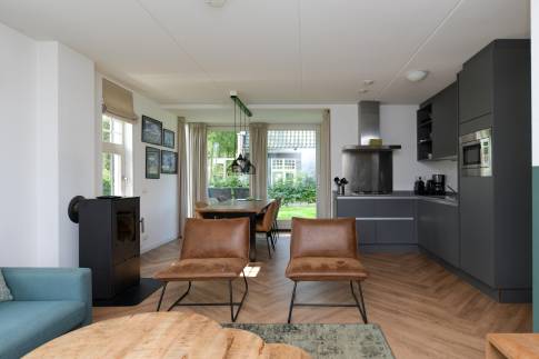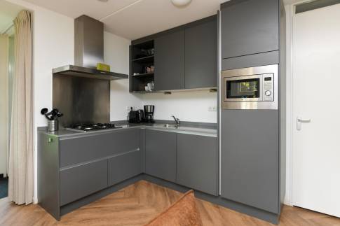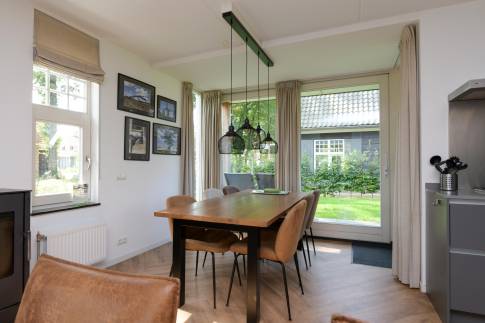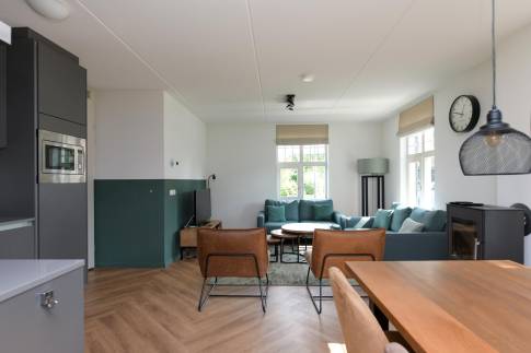 Recreatiewoning 302 (type 6L) is een vrijstaande 6-persoons recreatiewoning. De woning beschikt over een perceel eigen grond van 285 m2 en is gelegen aan een rustige weg op het park. De sfeervolle woonkamer heeft een ruime zithoek en houtkachel, door de grote ramen is er veel lichtinval. De open keuken met eethoek is van alle gemakken voorzien en beschikt over verschillende (inbouw)apparatuur zoals een vaatwasser, combimagnetron, 4-pits gaskookplaat en een Nespresso koffiezetapparaat. Tevens beschikt de woning over een wasmachine en droger.