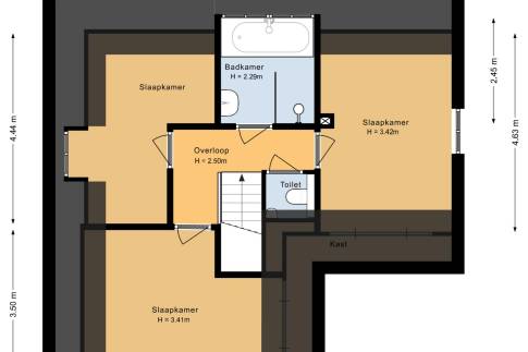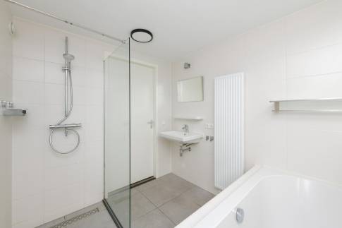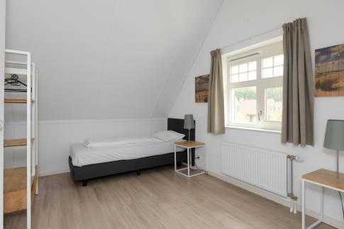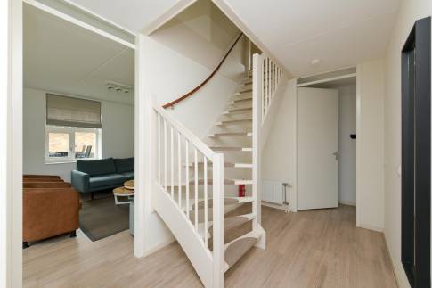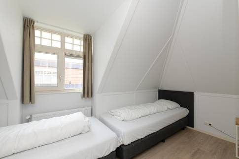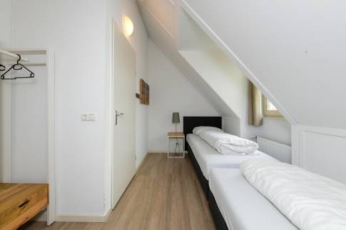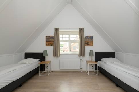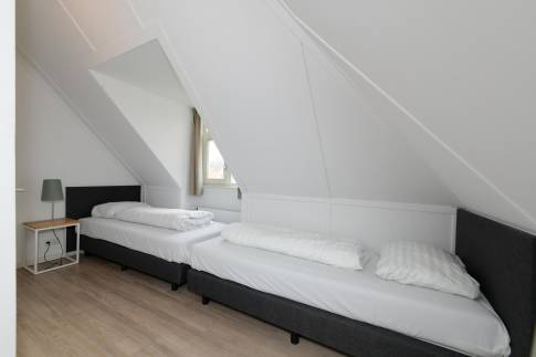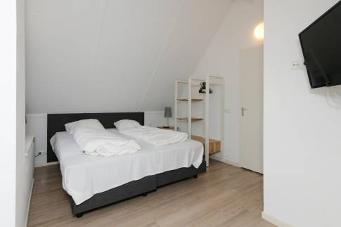 Op de eerste verdieping zijn de overige drie slaapkamers te vinden. Twee slaapkamers zijn ingericht met twee 1-persoons boxsprings en flatscreen-tv. De andere slaapkamer is ingericht met twee 1-persoons boxsprings. Op de verdieping is tevens een tweede badkamer aanwezig, voorzien van een ligbad, douche en wastafel. Daarnaast is er een separaat toilet aanwezig op de verdieping. Via de buitenzijde van de woning is de inpandige berging te bereiken.